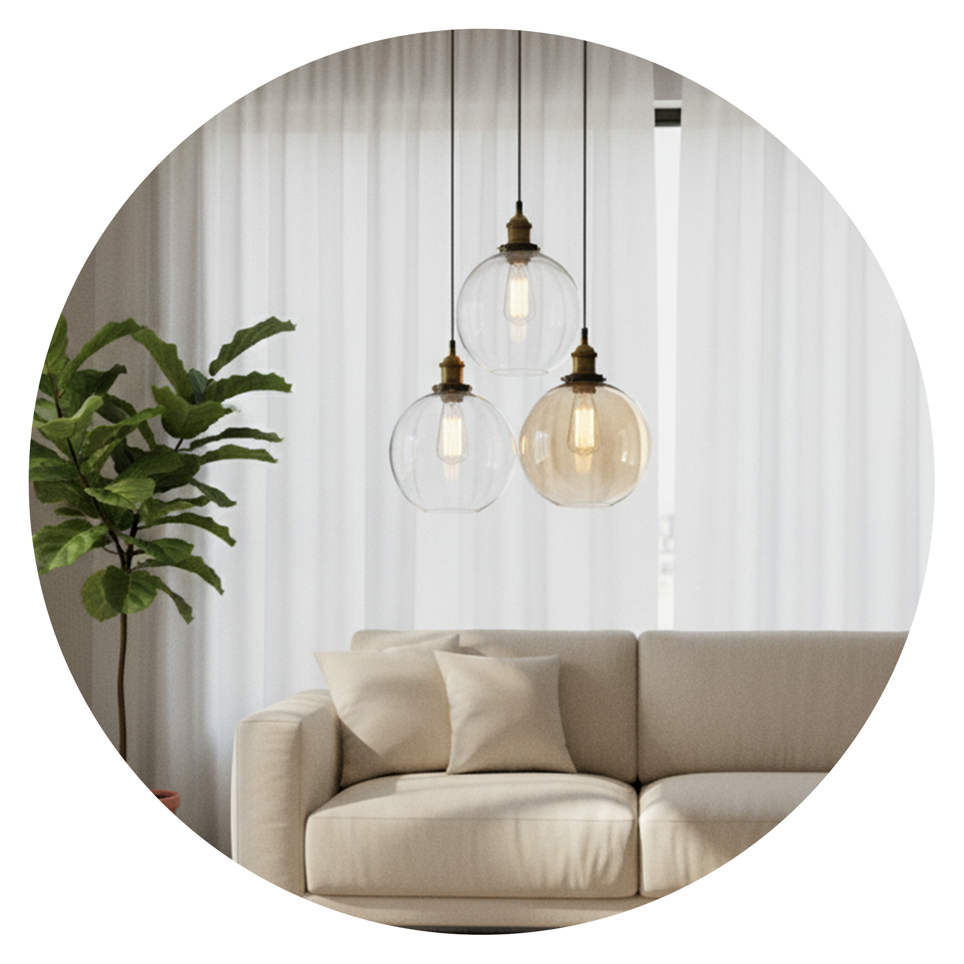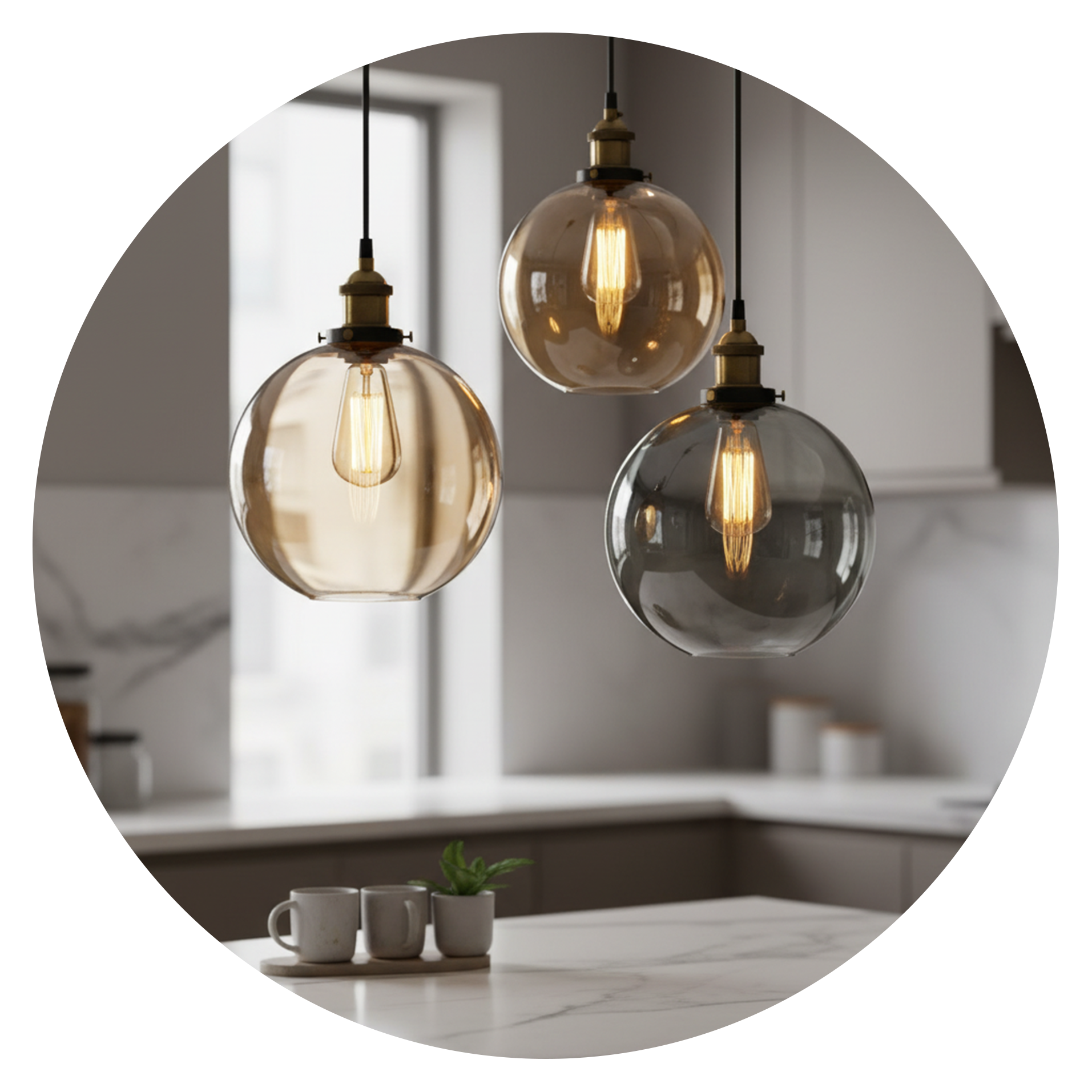 | Description | A refined glass globe pendant designed to create a soft and balanced lighting atmosphere. With warm brass details and multiple size and color options, it adapts effortlessly to modern interiors. |