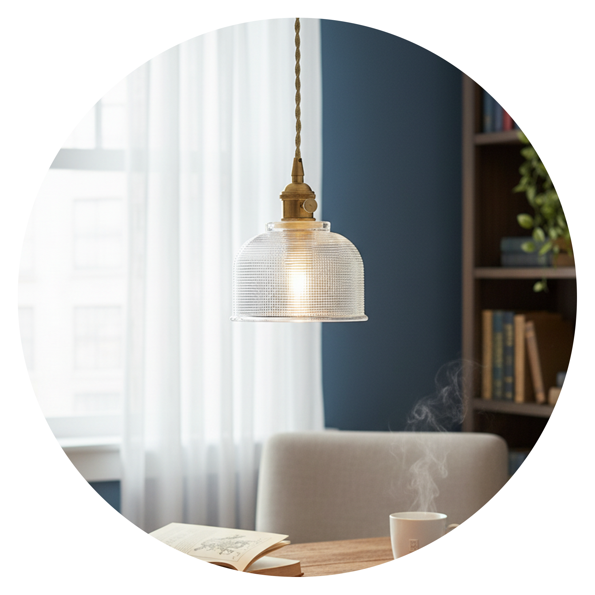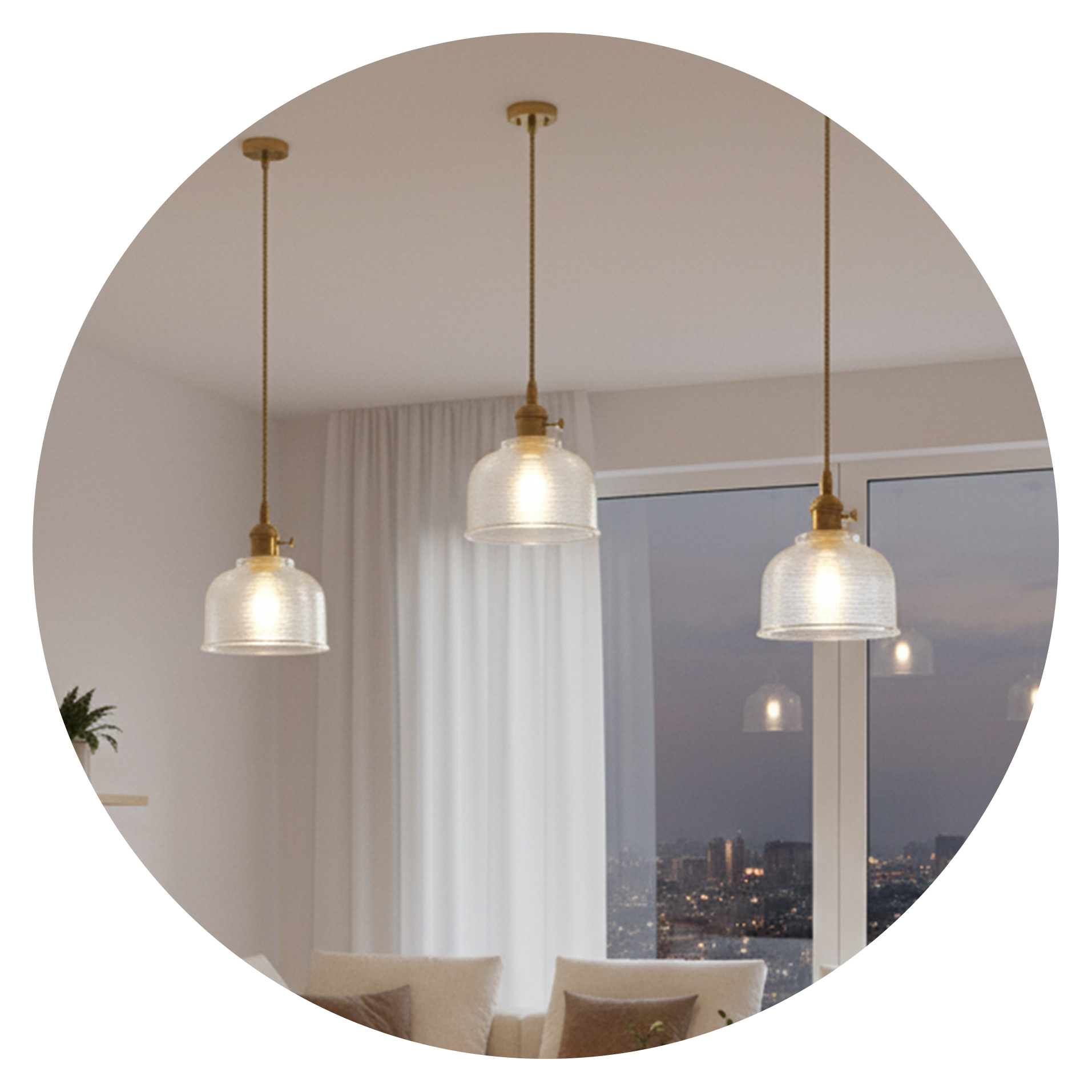 Ideal for spaces that require soft ambient lighting with a refined aesthetic, such as kitchen counters, dining setups, bedside corners, and contemporary interiors. The adjustable cord provides flexibility for various ceiling heights and layout needs.