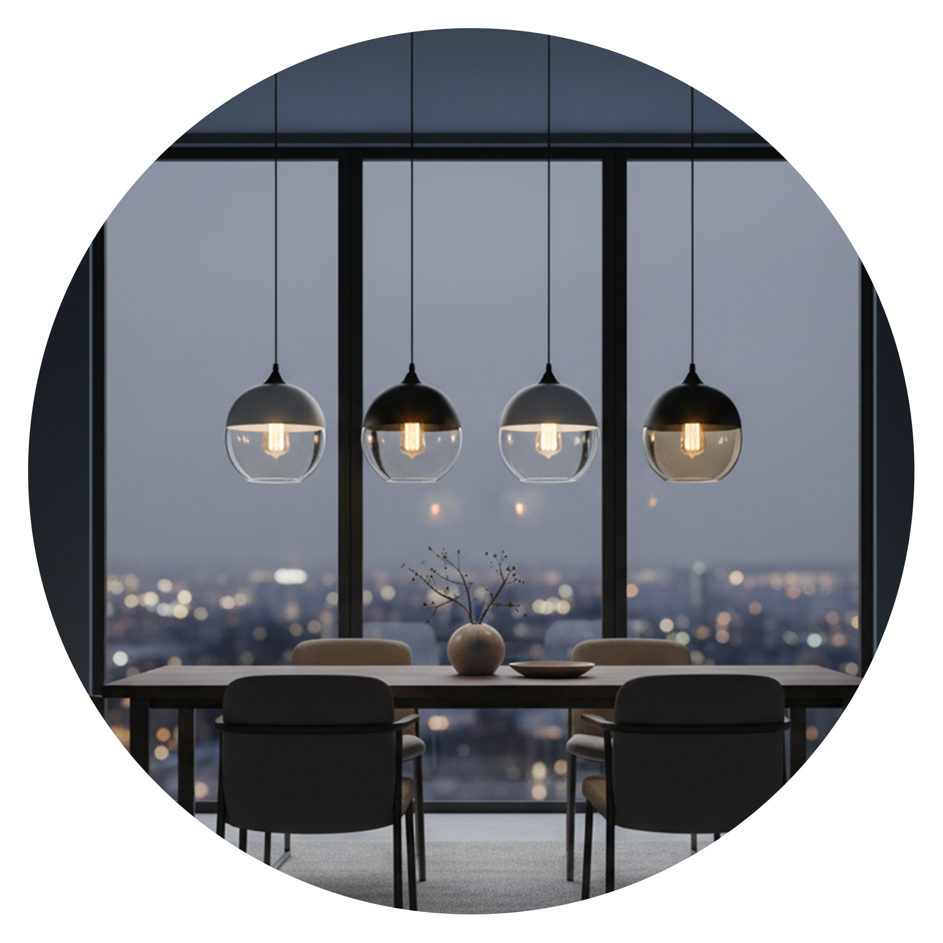 April 20, 2026This pendant light showcases a modern glass globe with a layered design, featuring a solid upper shade and a transparent or amber lower section. The glass softly diffuses light, creating a cozy and inviting atmosphere. Ideal for kitchen islands, dining rooms, bedside lighting, or contemporary living areas. The adjustable cord allows installation at various ceiling heights.
