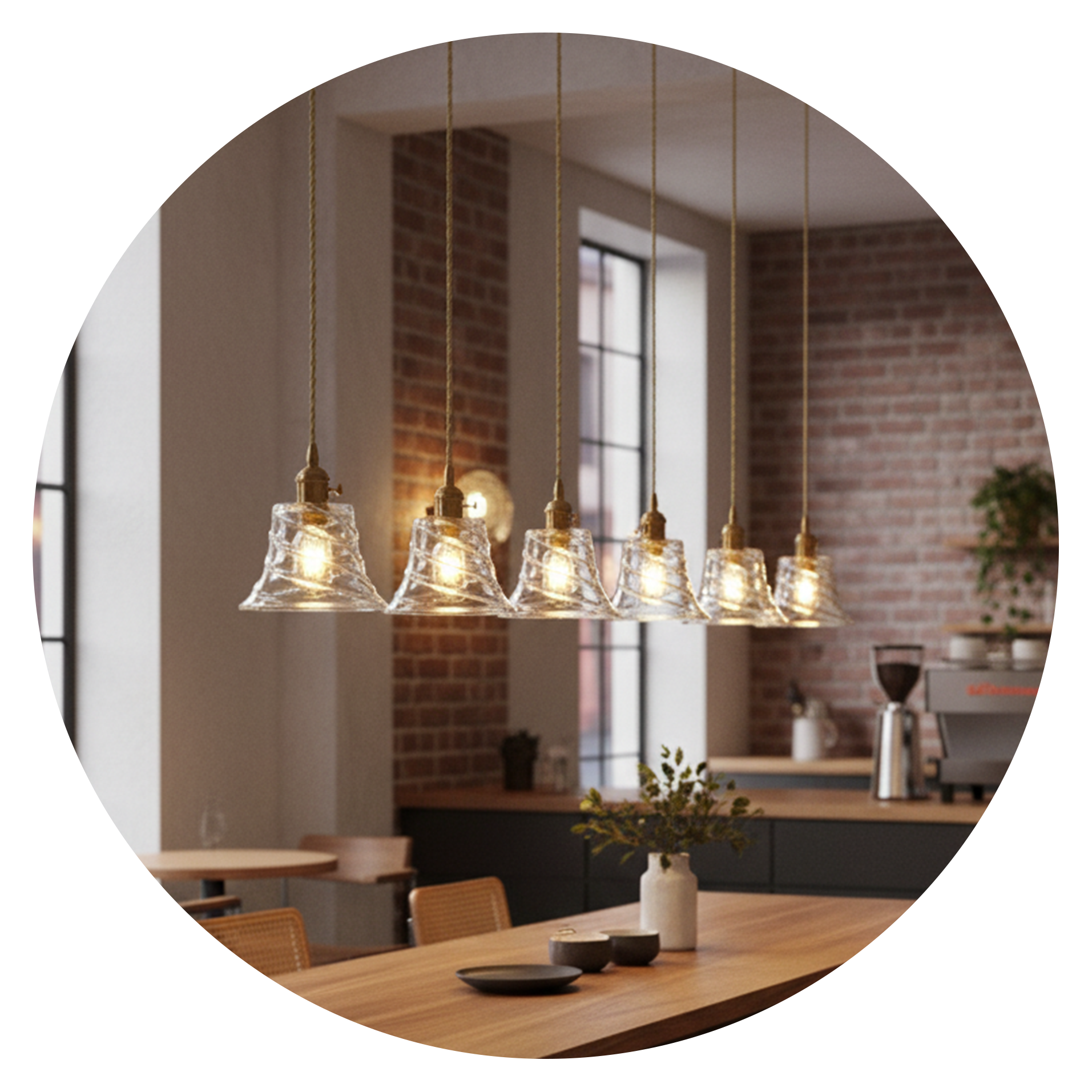 Perfect for kitchen islands, dining tables, bedside areas, hallways, and café lighting. The adjustable cord allows flexible installation for different ceiling heights.
