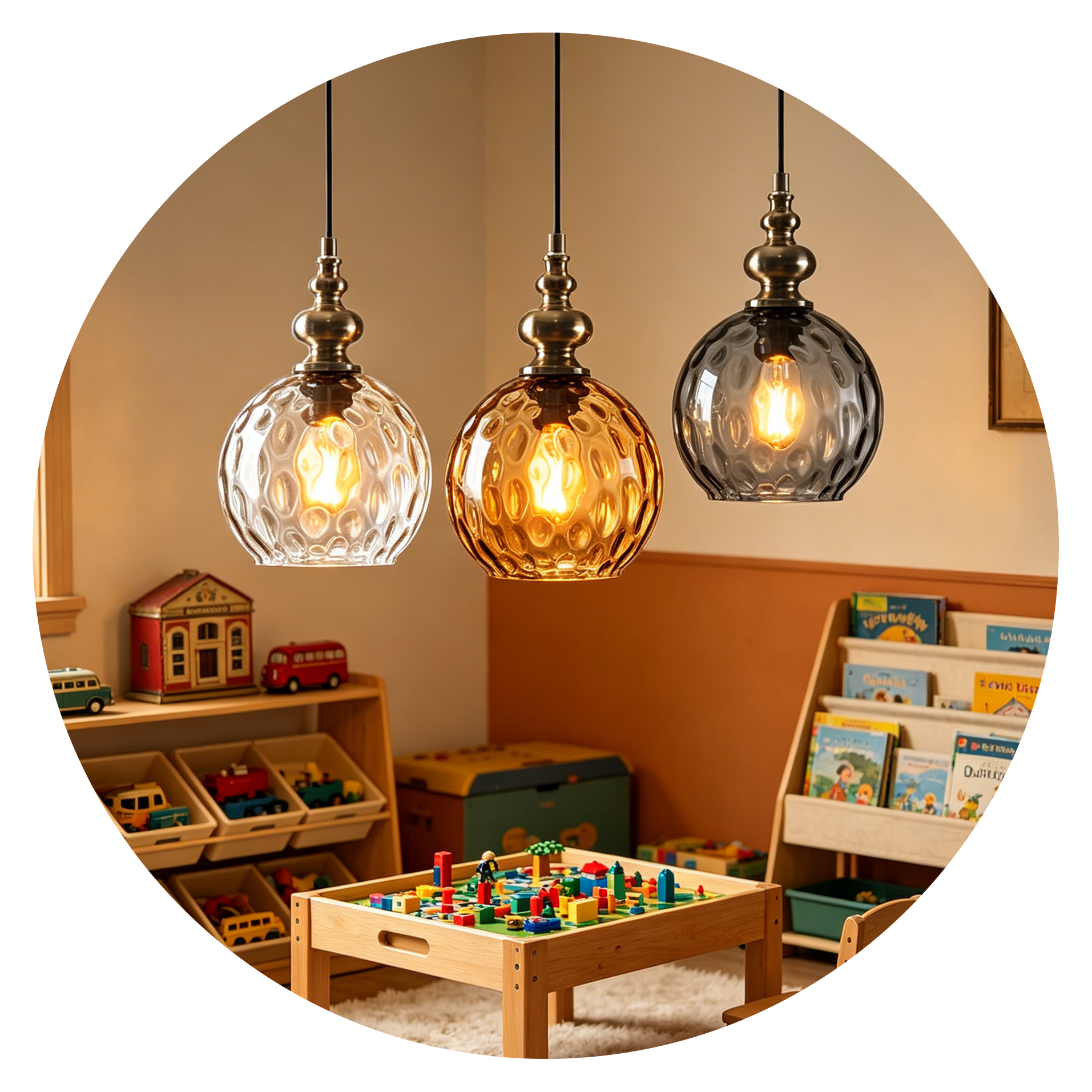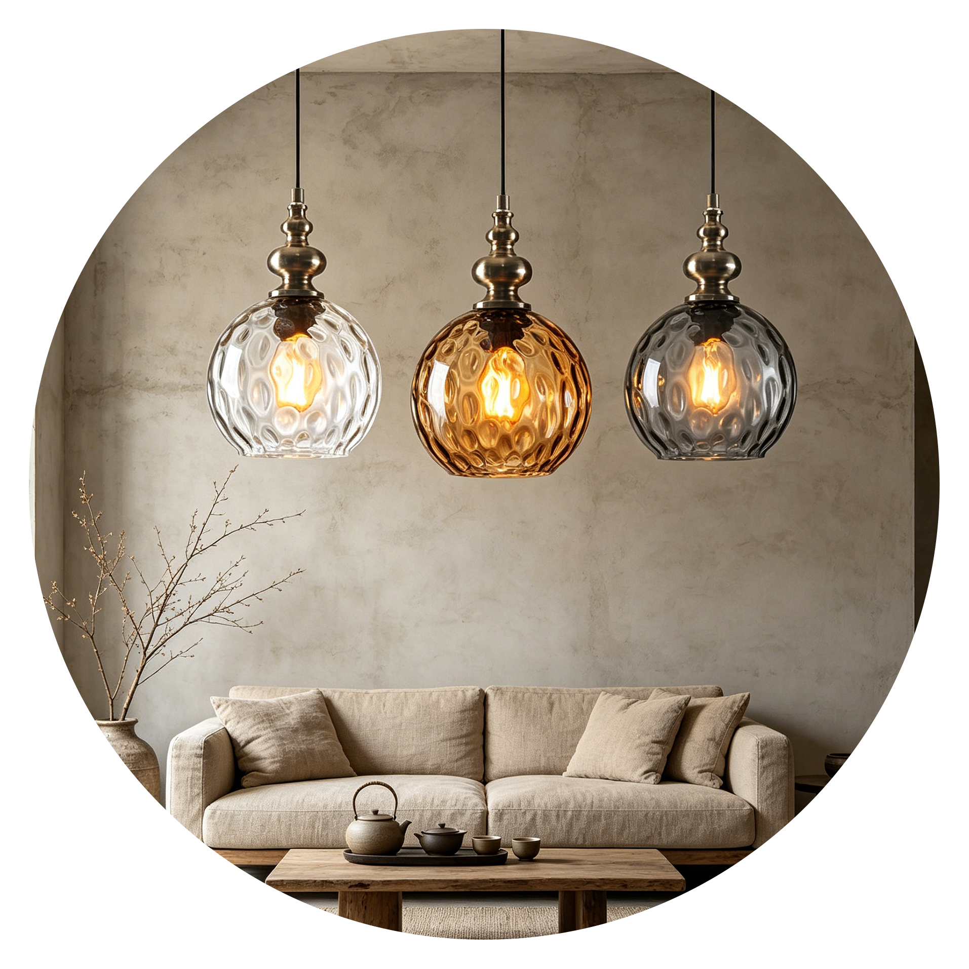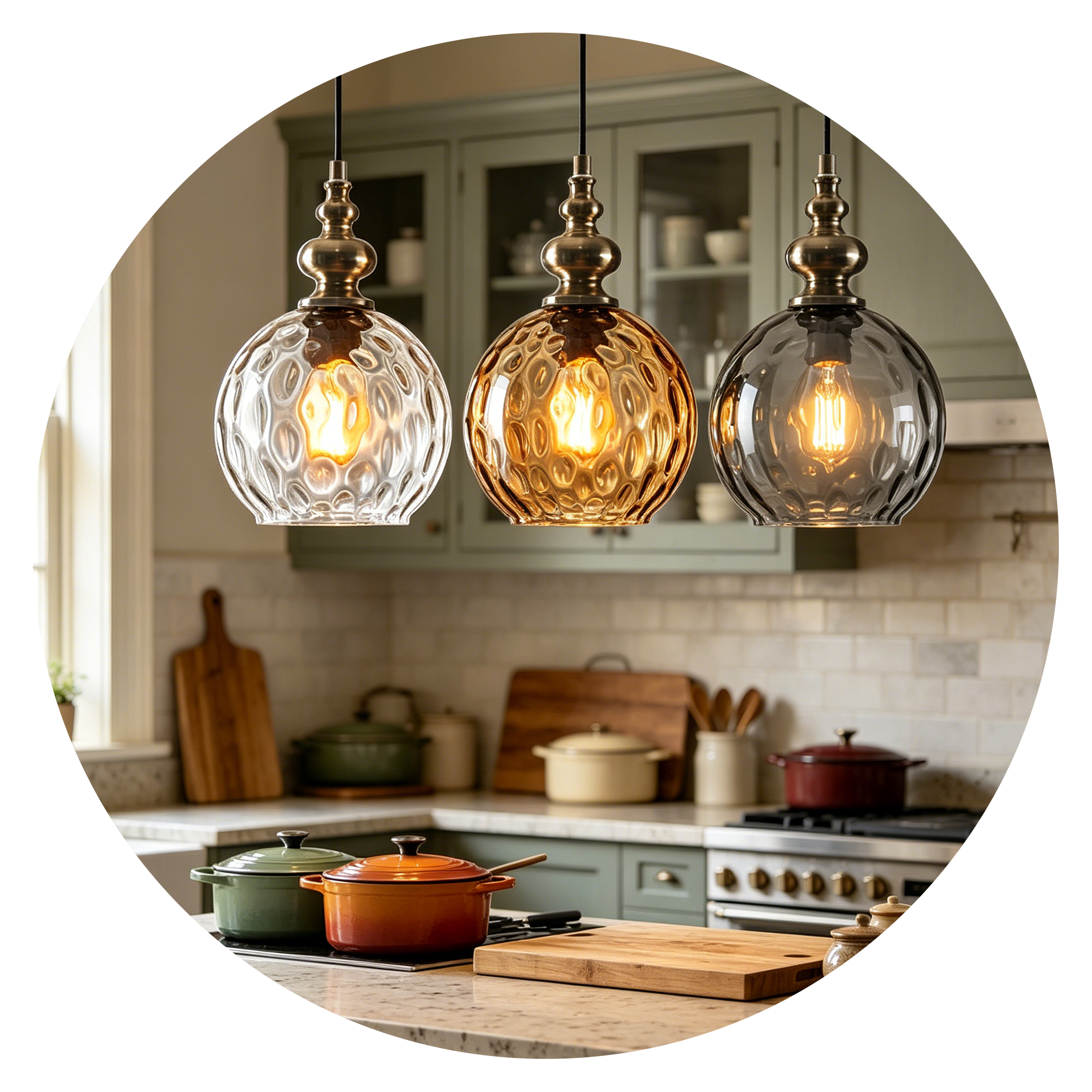 Available in clear, amber, and smoke finishes, each color creates a different lighting atmosphere—from bright illumination to deeper ambient tones. Ideal for kitchen islands, dining areas, bedside spaces, and cozy interiors. The adjustable cord allows flexible installation for various ceiling heights.